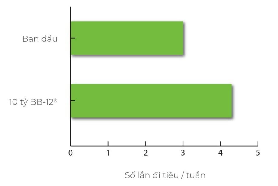 Đối với tần suất đi tiêu: Thử nghiệm lâm sàng cùng Bifi dobacterium lactis BB-12®- Trong một thử nghiệm lâm sàng tiêu chuẩn vàng với hơn 1.200 người tham gia đại diện cho nhiều chế độ ăn uống và độ tuổi khác nhau, họ được chia làm hai nhóm.