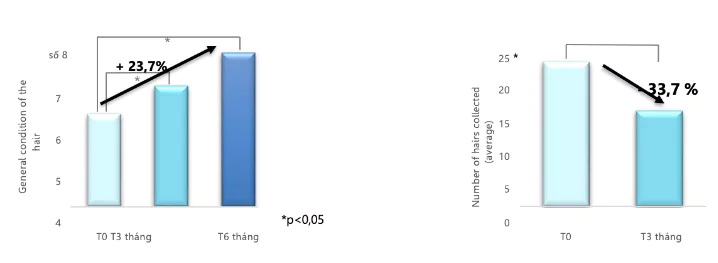 - Sau 6 tháng, tình trạng chung của tóc được cải thiện lên đến 23,7%.