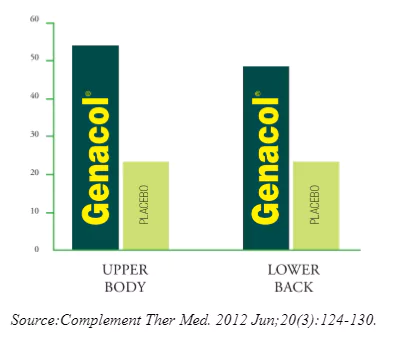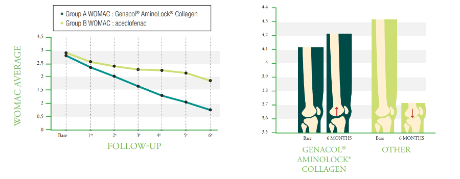 - Sau sáu tháng điều trị, chứng đau khớp và chức năng đã được cải thiện đáng kể khi sử dụng Genacol® AminoLock® Collagen so với thuốc NSAID tham chiếu.