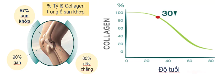 - Hệ quả của sự suy giảm Collagen đối với khớp: Khó chịu hoặc cứng khớp; Suy thoái sụn khớp; Thoái hóa mô khớp; Dễ bị chấn thương dây chằng và gân.